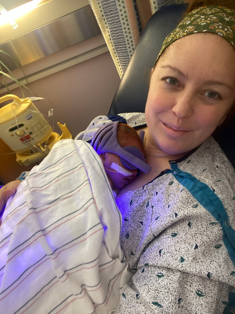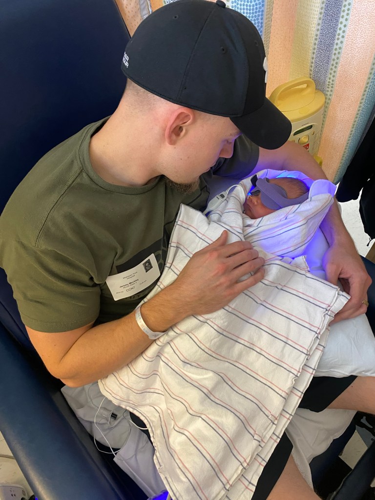 Maelyn’s labs came back and her bilirubin level was better so the doctor was comfortable with us getting to hold her and use the portable light therapy. It was a huge answer to prayer to be able to hold her all afternoon when we were originally told we couldn’t today. ❤️
