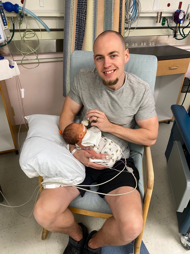 I was discharged this yesterday afternoon! I am doing much better in my physical recovery minus some very bad foot swelling they’re keeping an eye on. Hormones and emotions have been all over but I think that can be expected with any delivery right? Lots of tears but also so much joy and wonder every time we think and know we now have our daughter here. She is the absolute best 😭🩷 I am pumping every 3 hours and typically when we are with her in the NICU I pump and Jeremy attempts the bottle feeds with donor milk. We incorporate my milk with some of her oral care and they just started adding some of my milk to her feeding too I think. Also, Hello engorgement 🫨🙃!!